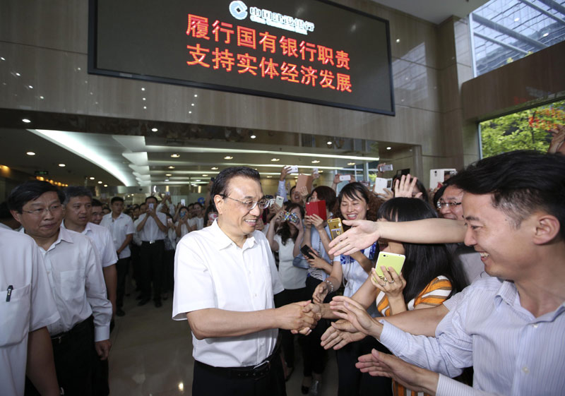 圖為李克強(qiáng)總理2016年6月20日下午到中國(guó)建設(shè)銀行考察。