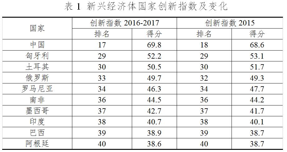 三、新興經(jīng)濟(jì)體創(chuàng)新排名整體靠后,金磚國家排名穩(wěn)定