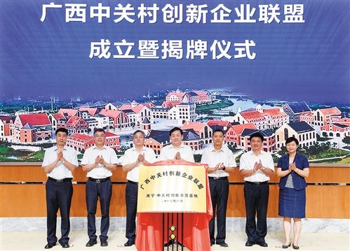 在南寧·中關(guān)村創(chuàng)新示范基地,廣西中關(guān)村創(chuàng)新企業(yè)聯(lián)盟成立暨首批會員揭牌儀式同時舉行。截至今年2月,中關(guān)村企業(yè)累計在廣西設(shè)立子公司221家,投資額總計94億元,分公司達(dá)549家。廣西中關(guān)村創(chuàng)新企業(yè)聯(lián)盟的成立對于加快聚集創(chuàng)新要素、構(gòu)建創(chuàng)新發(fā)展生態(tài),發(fā)揮南寧·中關(guān)村創(chuàng)新示范基地的輻射作用和溢出效應(yīng),將起到重要推動作用。