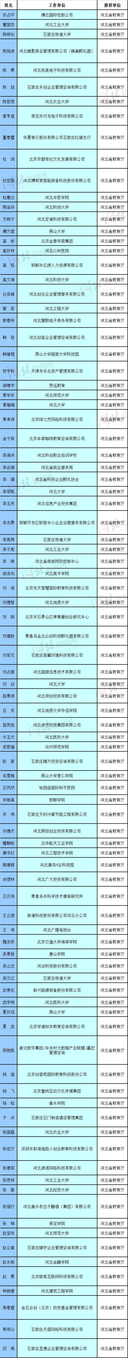 河北省入選全國萬名優(yōu)秀創(chuàng)新創(chuàng)業(yè)導(dǎo)師人才庫首批入庫導(dǎo)師名單