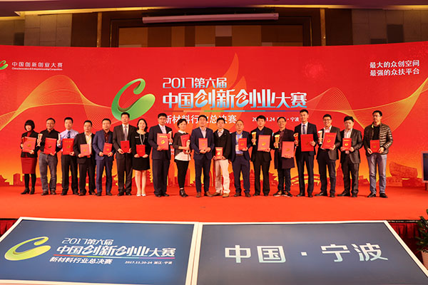 11月24日,2017第六屆中國創(chuàng)新創(chuàng)業(yè)大賽新材料行業(yè)總決賽在浙江寧波迎來終巔峰決戰(zhàn)?萍疾炕鹁嬷行母敝魅问⒀恿郑瑢幉ㄊ腥嗣裾泵貢L胡望榮,寧波市科學技術局黨組書記、局長勵永惠等領導出席活動并頒獎。