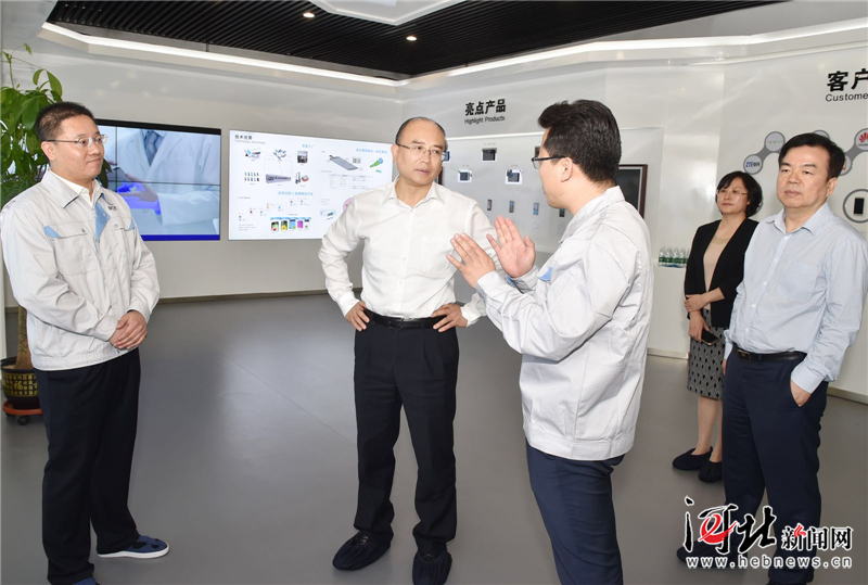 5月17日上午,省長許勤深入廊坊市部分高新技術(shù)企業(yè)進(jìn)行調(diào)研。這是許勤在維信諾(固安)公司是維信諾科技股份有限公司旗下全資子公司,詳細(xì)了解企業(yè)創(chuàng)新成果。記者孟宇光攝