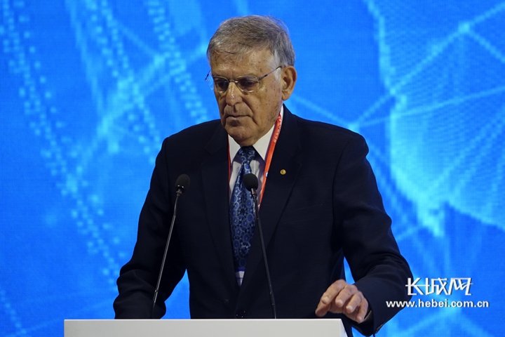 以色列諾貝爾化學獎得主達尼埃爾謝赫特曼正在發(fā)表演講。記者張藝萌攝