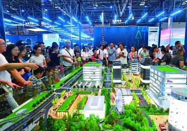 觀眾在首屆中國(guó)國(guó)際智能產(chǎn)業(yè)博覽會(huì)上參觀“城市智慧交通新生態(tài)”動(dòng)態(tài)沙盤(pán)。新華社記者 王全超攝