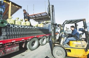 近日,工人在位于安平縣高新技術(shù)產(chǎn)業(yè)開發(fā)區(qū)的聚成國際物流產(chǎn)業(yè)園往貨車上裝載貨品。安平縣是全國大的絲網(wǎng)生產(chǎn)基地,總投資52億元的安平縣聚成國際物流產(chǎn)業(yè)園依托安平縣傳統(tǒng)絲網(wǎng)產(chǎn)業(yè)