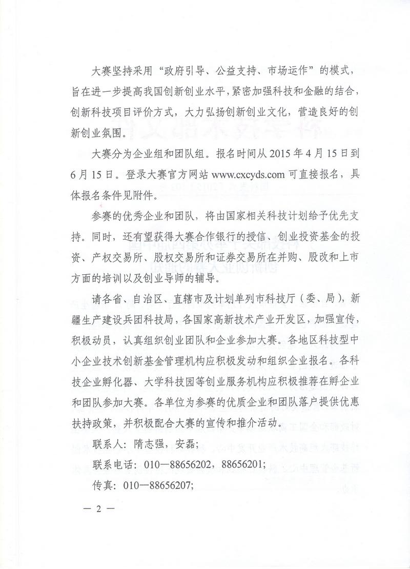 科技部關(guān)于舉辦第四屆中國(guó)創(chuàng)新創(chuàng)業(yè)大賽的通知