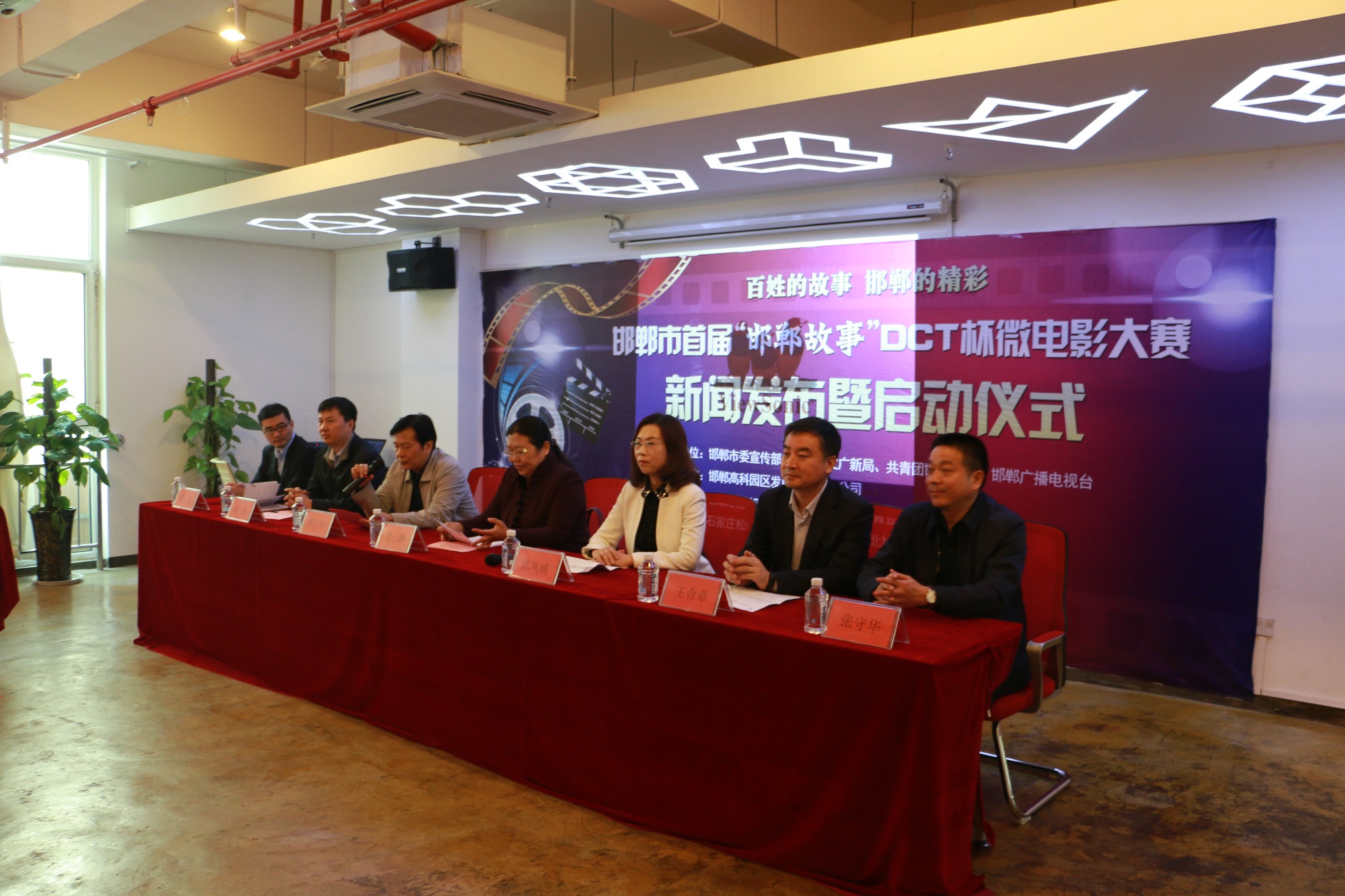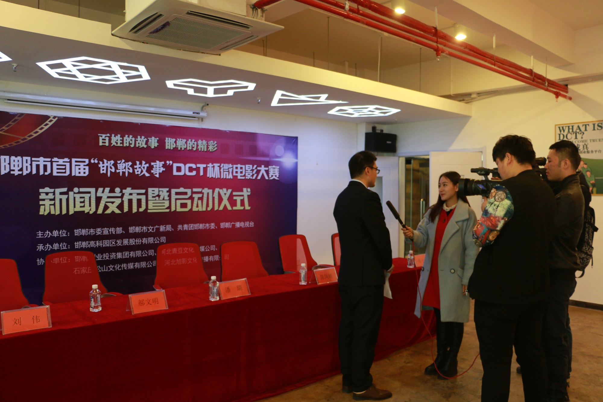 由邯鄲市委宣傳部、邯鄲市文廣新局、共青團(tuán)邯鄲市委、邯鄲廣播電視臺主辦,邯鄲高科園區(qū)發(fā)展股份有限公司承辦,邯鄲創(chuàng)業(yè)投資集團(tuán)有限公司、河北青豆文化傳媒公司、石家莊松山文化傳媒有限公司、河北旭影文化傳播有限公司協(xié)辦的邯鄲市首屆“邯鄲故事”DCT杯微電影大賽新聞發(fā)布暨啟動儀式,于2016年3月 17日上午在邯鄲高科DCT創(chuàng)客空間會議室圓滿舉行。