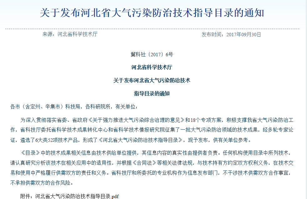 近日,河北省科學(xué)技術(shù)廳委托省科學(xué)技術(shù)成果轉(zhuǎn)化中心和省科學(xué)技術(shù)情報(bào)研究院征集了一批大氣污染防治領(lǐng)域的技術(shù)成果,經(jīng)多輪專家論證,遴選了6大類52項(xiàng)技術(shù)產(chǎn)品,形成了《河北省大氣污染防治技術(shù)指導(dǎo)目錄》,園區(qū)企業(yè)河北唯沃環(huán)境工程科技有限公司榮幸入選。